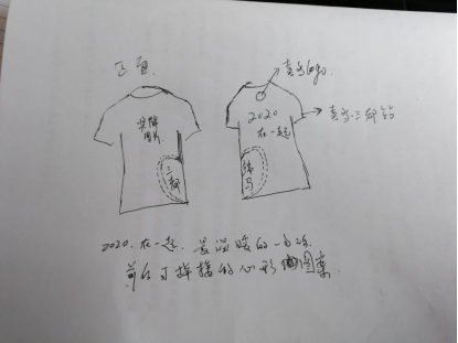 衣服采用国旗色,大红底色,黄色线条和文字,那是对伟大祖国的热爱。和奖牌呼应的水书文字。前后拼接而成的心形图案,2020,让我们深深的意识到,我们绝不仅仅是单独的存在。