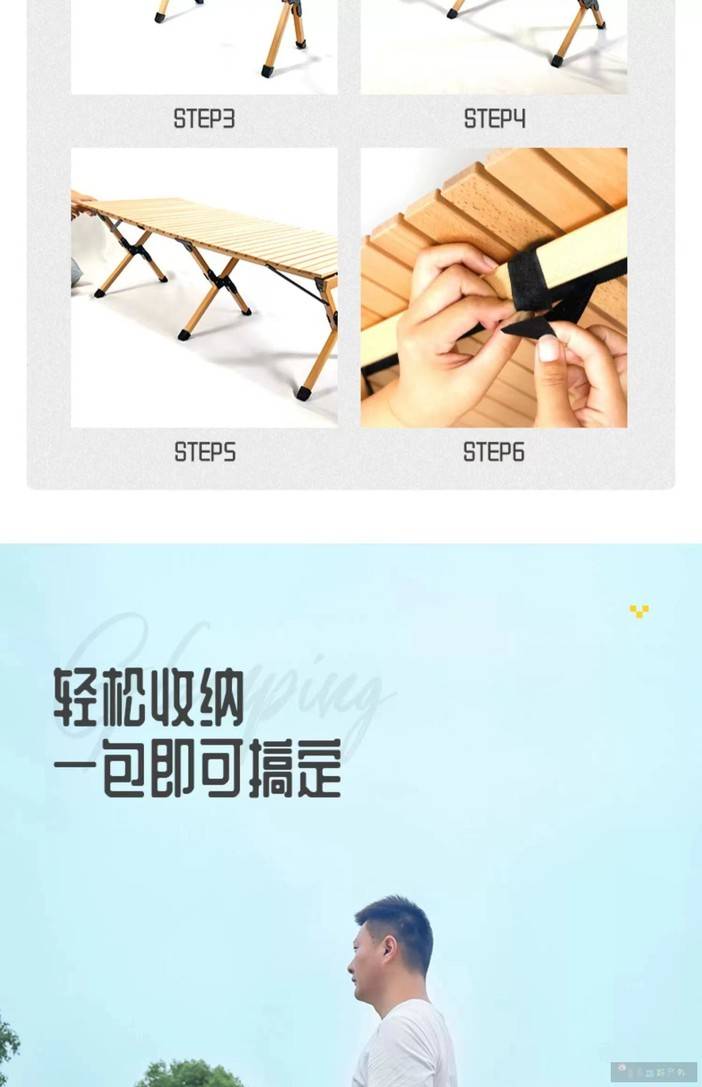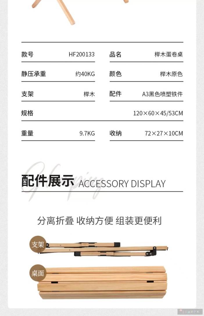 户外蛋卷桌榉木折叠桌露营野营野餐装备用品自驾游便携式实木桌子