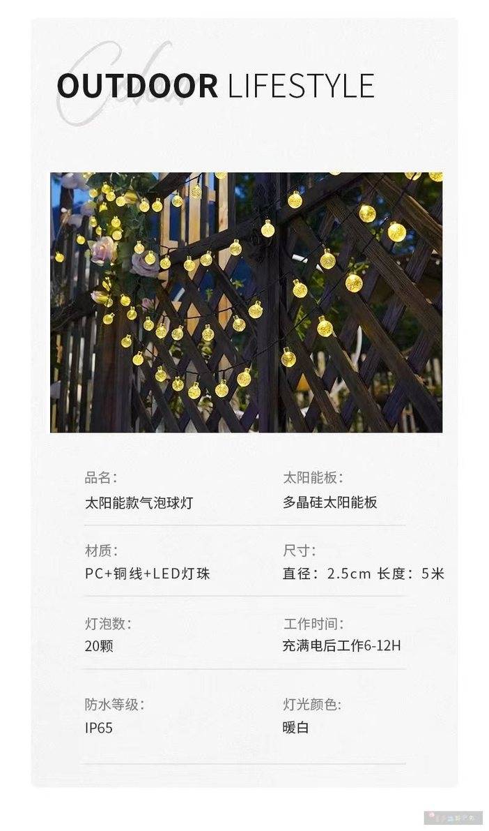 喜马拉雅LED太阳能灯串帐篷户外防水小彩灯装饰灯天幕露营氛围灯
